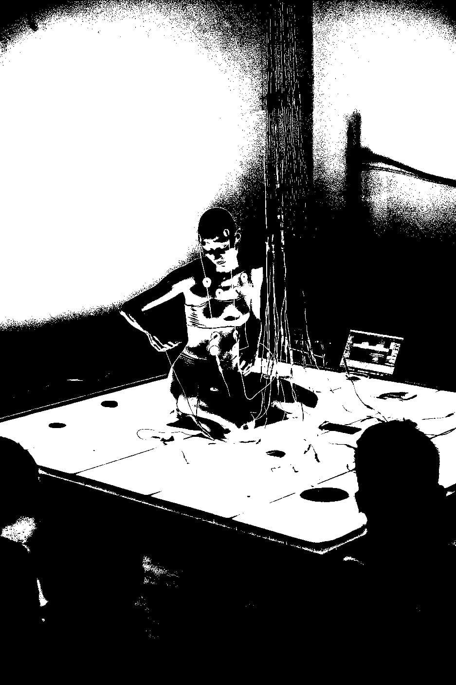 Sa performance sonore explore les connexions entre les différents concepts qui constituent notre présent et futur biotechnologique : les humain·e·x·s, les machines et les bactéries. Ainsi relié·e·x·s, iels ne forment plus qu’une entité : le·a·x cyborg. A travers le courant électrique qui circule au contact entre l’humain·e·x, seize souches de bactéries et les câbles, le live invite à un voyage ambiental entre sons apaisants et assourdissants, doux et grinçants, utopiques et dystopiques.